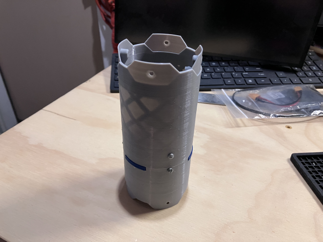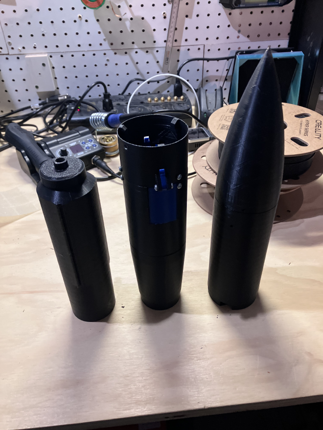 For the American Rocketry Challenge, you are tasked to create a rocket that can carry an egg to a specific altitude and get it back down within a set time goal. These rockets are pretty small, and because of this my rocket is entierly 3D printed.