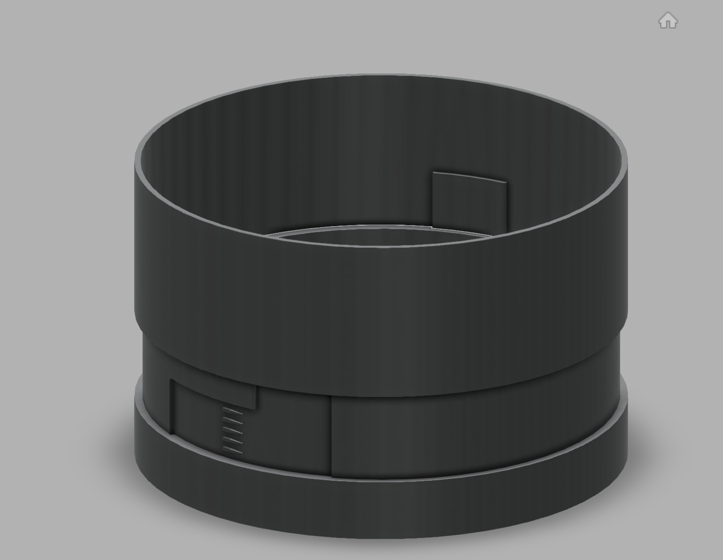 Since every part is 3D printed, the rocket has to be split up into several different sections and assembled together. One of the challeneges with this is finding a way to join these sections together. My goal was to design a connector that is: